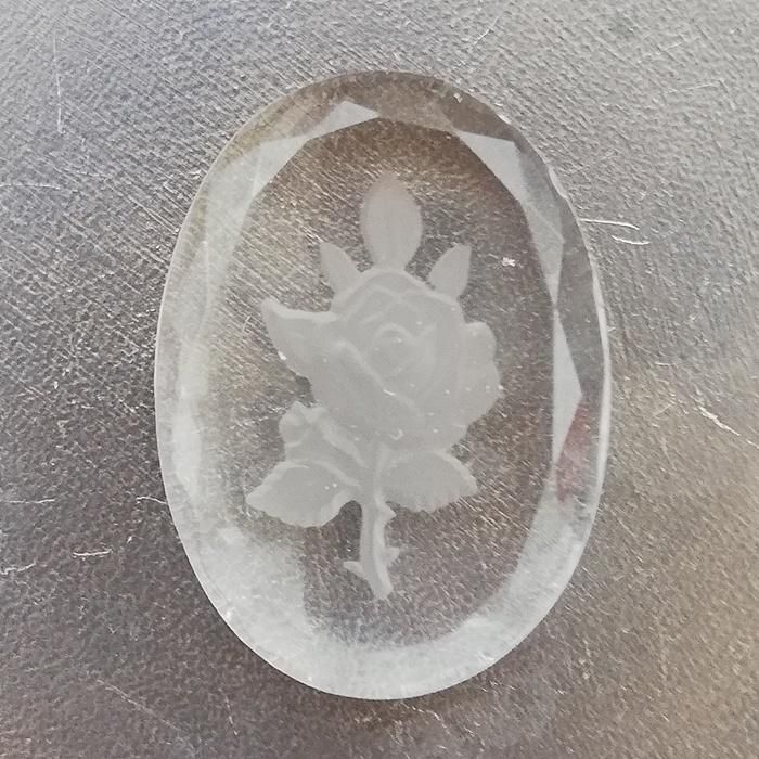 ヴィンテージ ガラス ドイツ インタリオ ローズ カメオカボション 25 x 18mm 【1個】