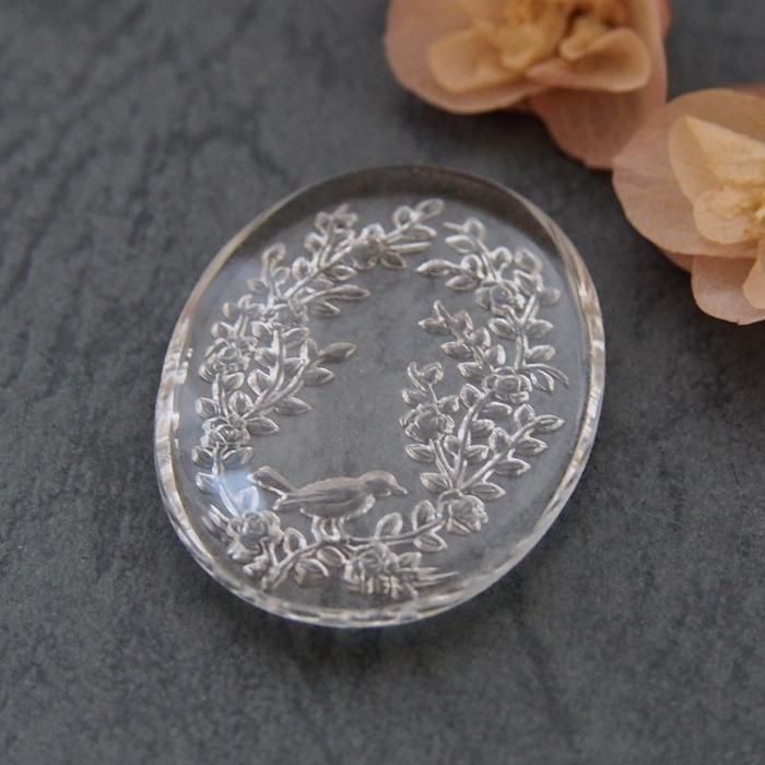 ヴィンテージ ガラス ドイツ インタリオ 鳥と小枝 オーバル カメオカボション 40 x 30mm 【1個】