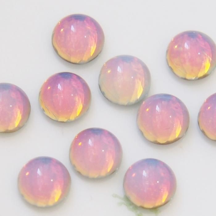 ヴィンテージ ドイツ ミルキーピンク&ホワイト オパールガラスカボション ラウンド 7mm【1個】
