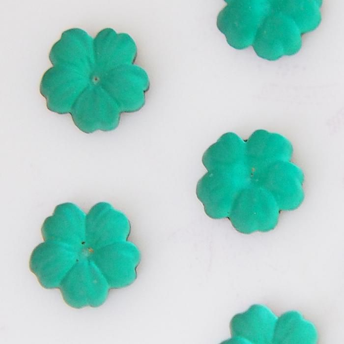 ヴィンテージ ガラス ドイツ グリーンフラワー カボション 8mm 【1個】