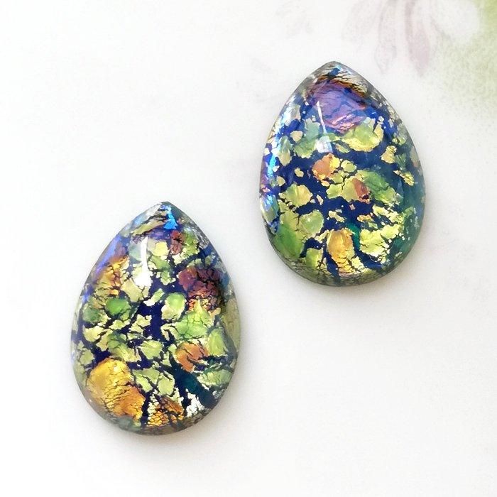 ヴィンテージ チェコ マルチカラー ファイヤーオパール ガラス カボション ドロップ・ペアシェイプ 18x13mm 【1個】