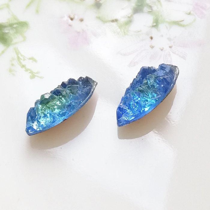 ヴィンテージ ドイツ ブルー&グリーン ガラスストーン ナベット 15x7mm 【1個】