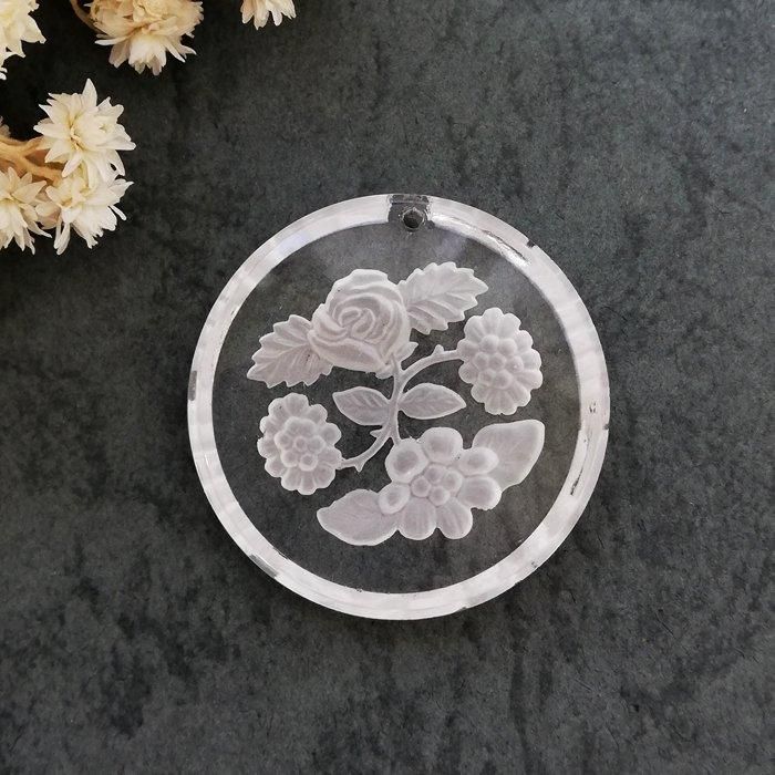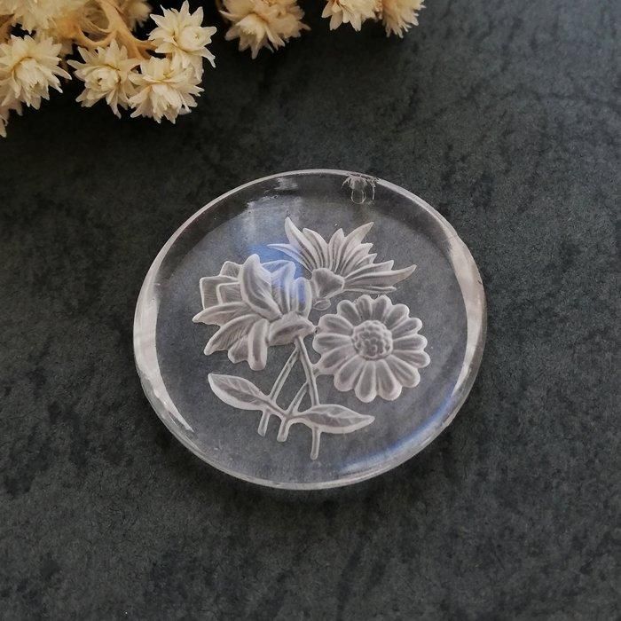 ヴィンテージ ドイツ フラワー インタリオ ガラスカメオ ペンダント 30mm 【1個】