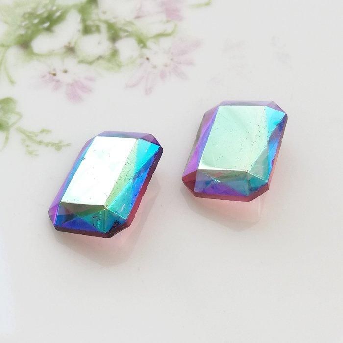 ヴィンテージ ドイツ ダークパープルオーロラ ガラスストーン オクタゴン 18 x 13mm 【1個】