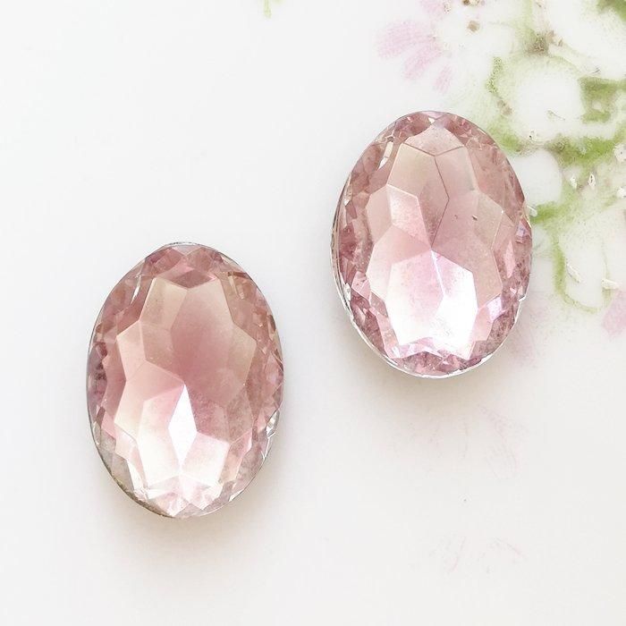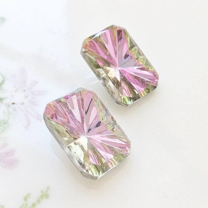 ヴィンテージ ドイツ ヴィトレイルライト ピンク&クリア ガラスストーン オクタゴン 18 x 13mm 【1個】