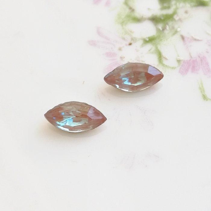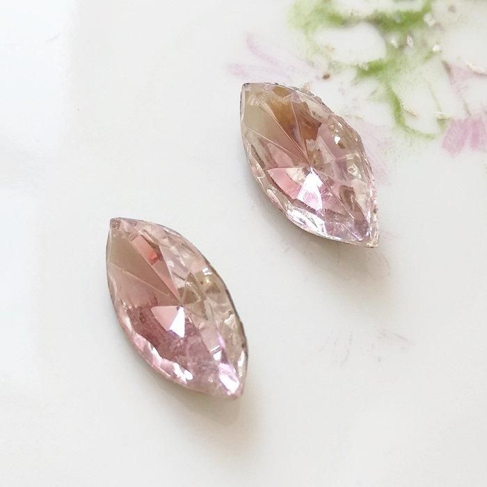 ヴィンテージ ドイツ ピンク&パープル ガラスストーン ナベット 15x7mm 【1個】