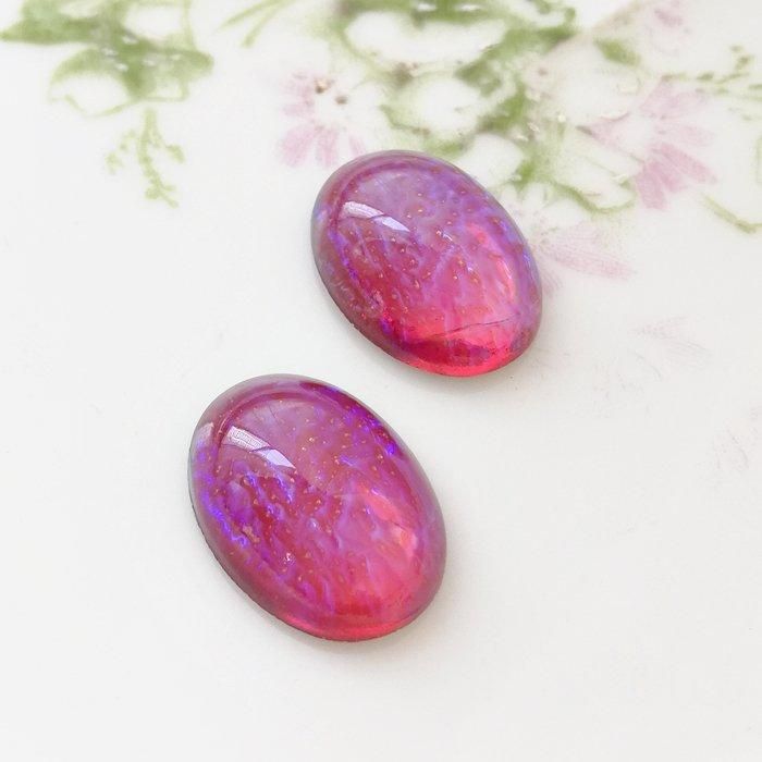 ヴィンテージ ドイツ ピンクファイヤーオパール ガラス カボション オーバル 14x10mm 【1個】