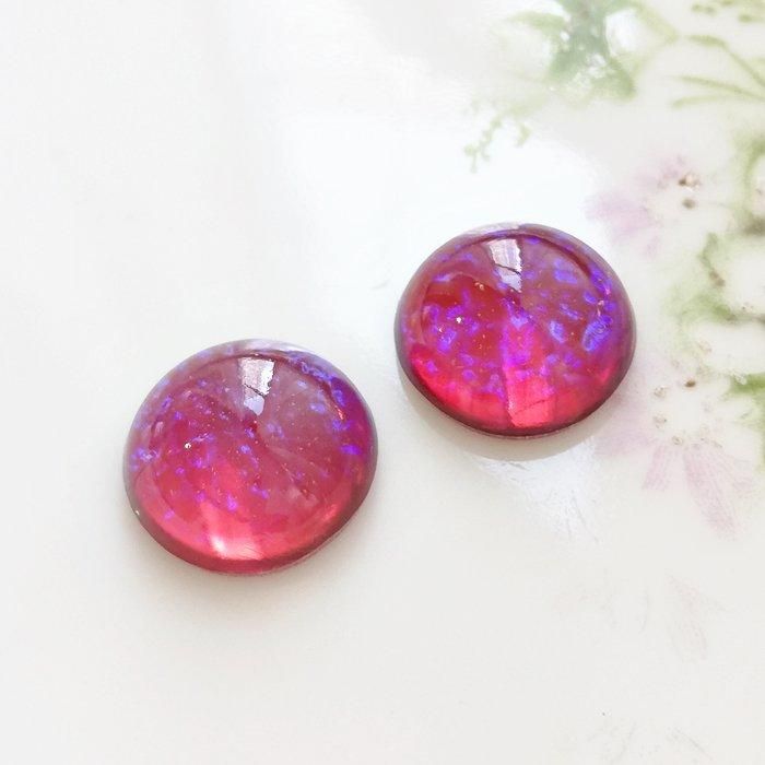 ヴィンテージ ドイツ ピンク&ブルーファイヤーオパール ガラス カボション ラウンド 8mm 【1個】