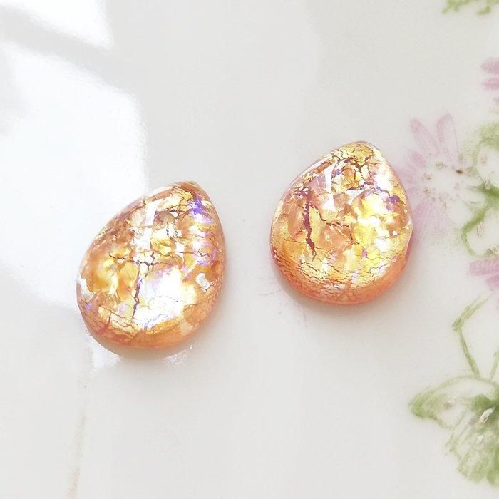チェコ ピーチ ファイヤーオパールガラス カボション ドロップ・ペアシェイプ 18x13mm 【1個】
