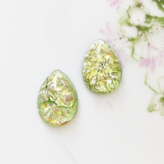 ヴィンテージ チェコ グリーンファイヤーオパール ガラス カボション ドロップ・ペアシェイプ 18x13mm 【1個】