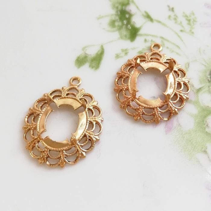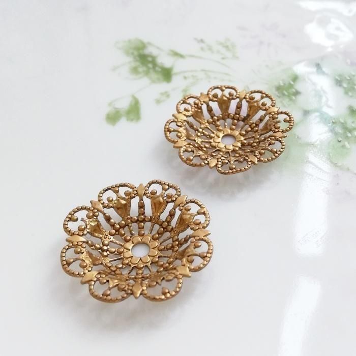 アメリカ製 USA アンティークゴールドトーン ブラス 真鍮 フィリグリー パーツ 22mm 【1個】