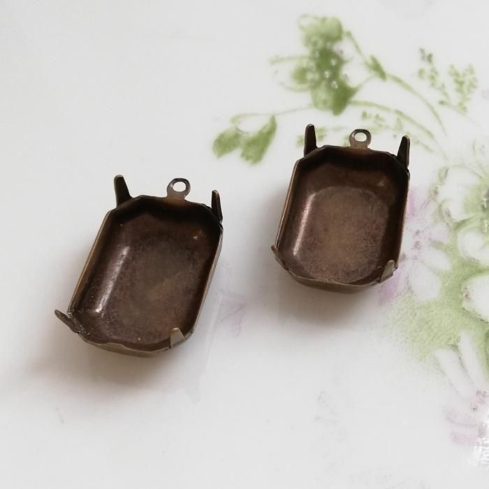 アメリカ製 USA アンティークゴールドトーン ブラス 真鍮 セッティング 空枠 台座(18x13mm用/オクタゴン) 【1個】