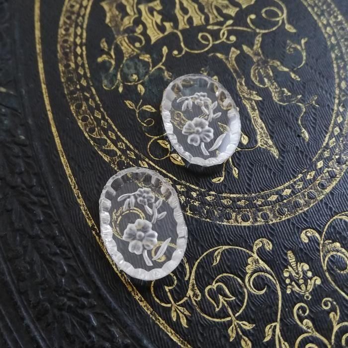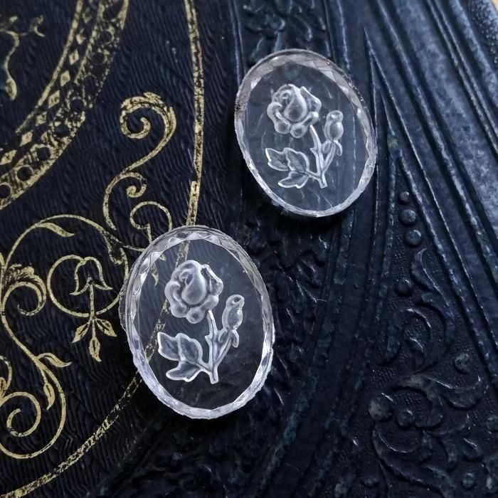ヴィンテージ フロストガラス ローズ 薔薇 インタリオ カメオ カボション オーバル 18x13mm【1個】