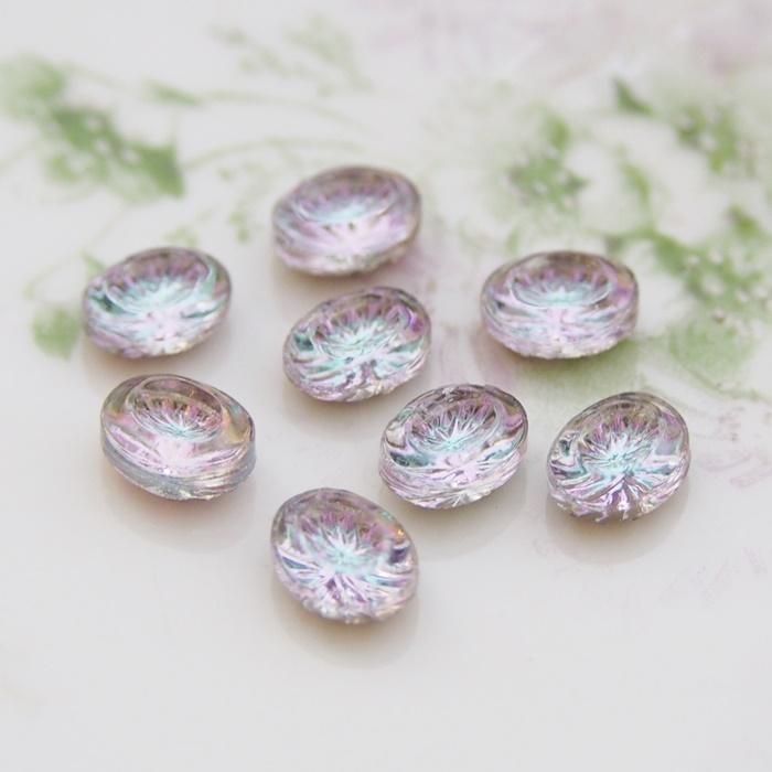 ヴィンテージ ドイツ ヴィトレイルライト ブルー&ピンク ガラスストーン オーバル 10x8mm 【1個】