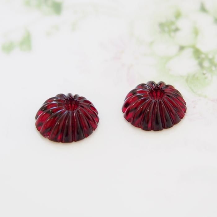 ヴィンテージ ドイツ ルビーレッド フラワー ガラスカボション ラウンド 13mm 【1個】