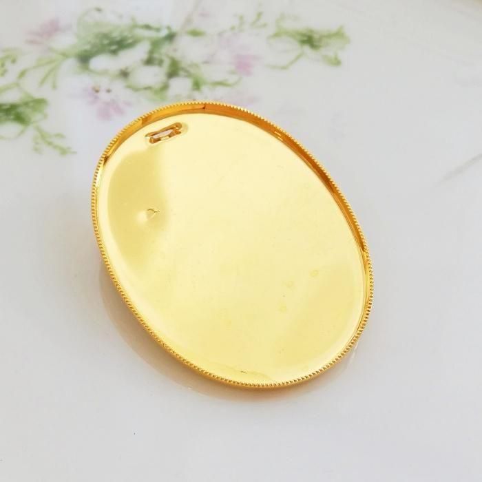 ゴールドトーン オーバル ペンダントトップ バチカン付き セッティング 空枠 台座 25x18mm【1個】