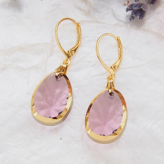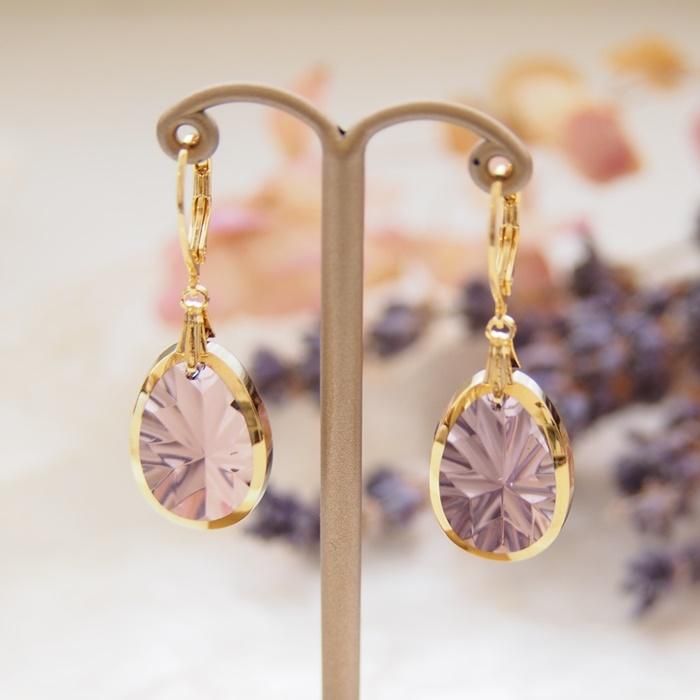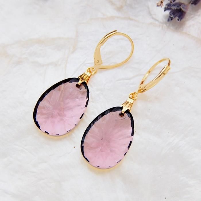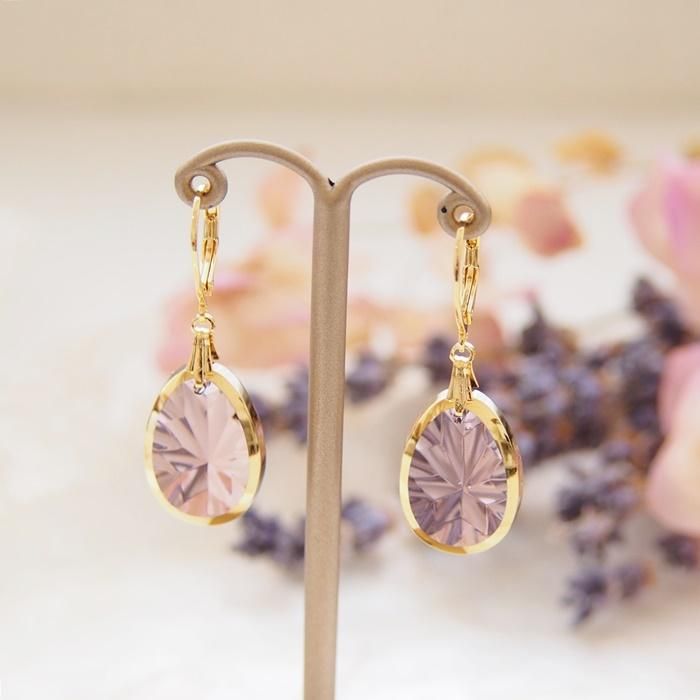 ヴィンテージガラス クリアパープル スターバースト オーバル イヤリング・ピアス