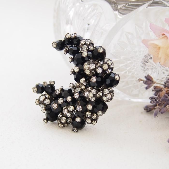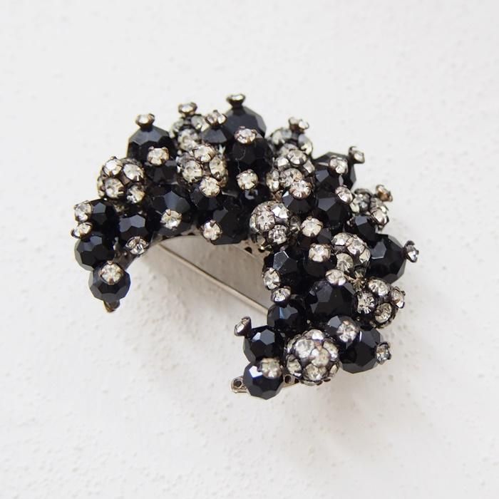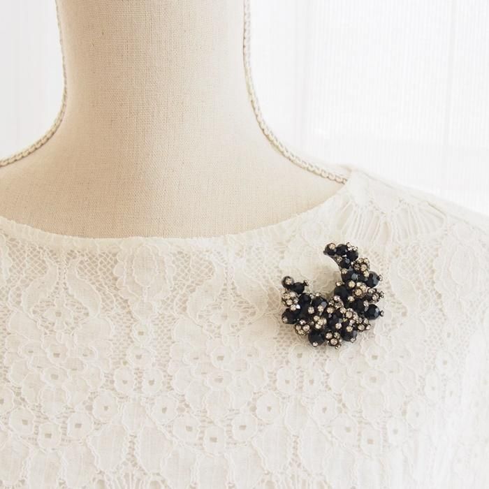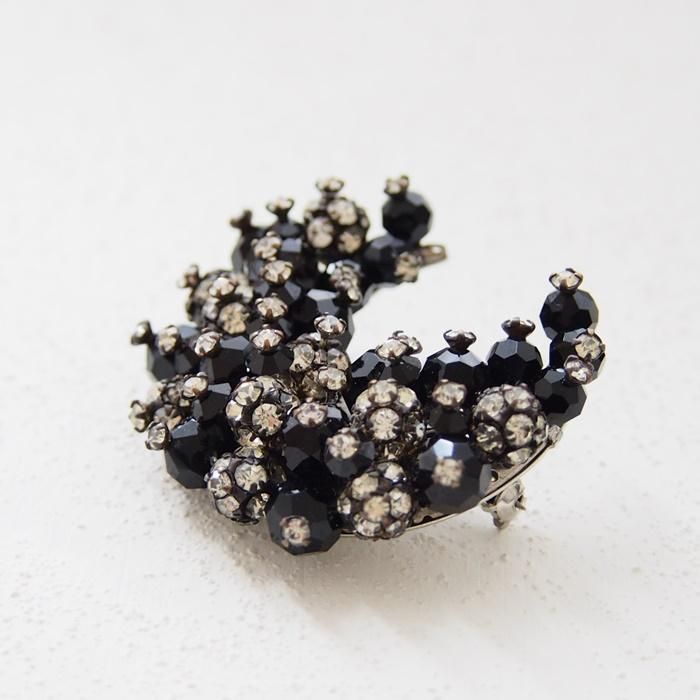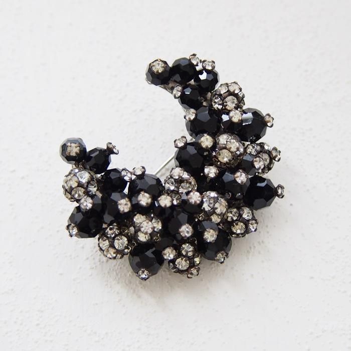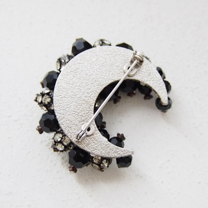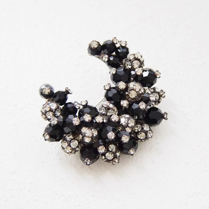ブラックビーズとクリアラインストーンの三日月型のブローチです。