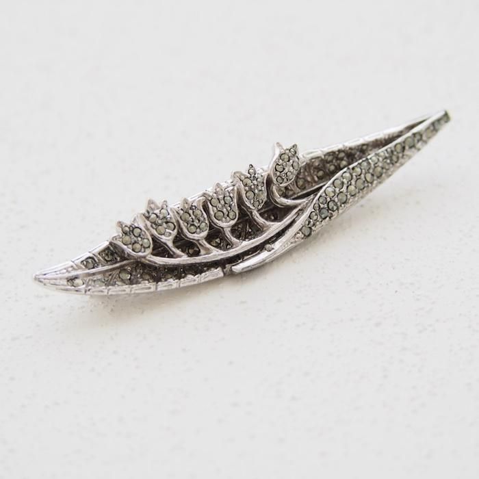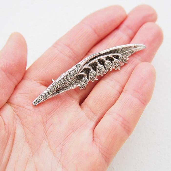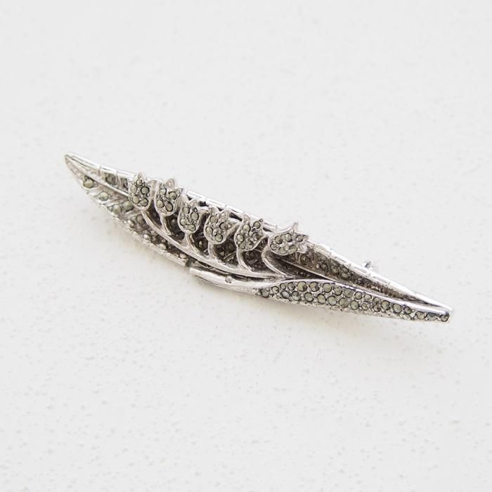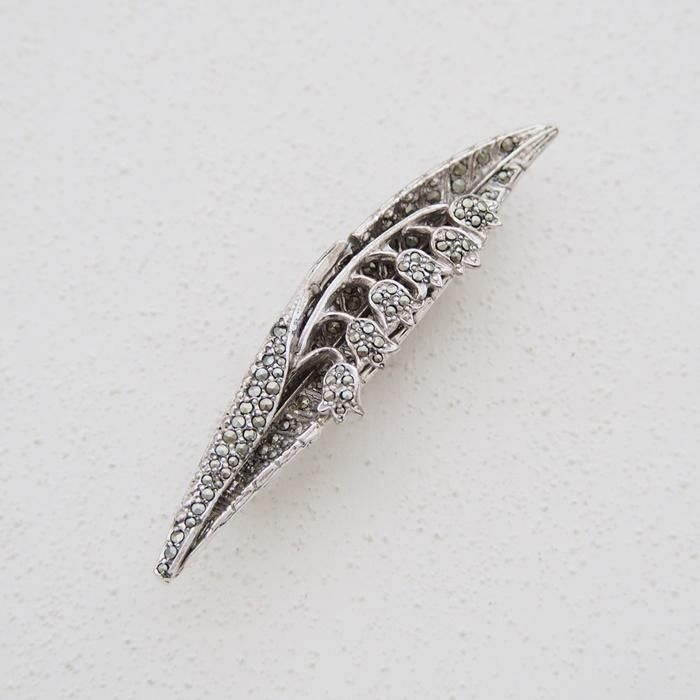 Unsigned Beauty シルバートーン マーカサイトラインストーン フラワー スズラン ブローチ