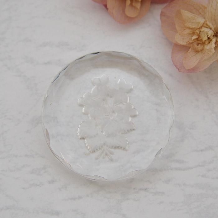 ヴィンテージ ガラス ドイツ スミレ バイオレット ラウンド カメオカボション 35mm 【1個】