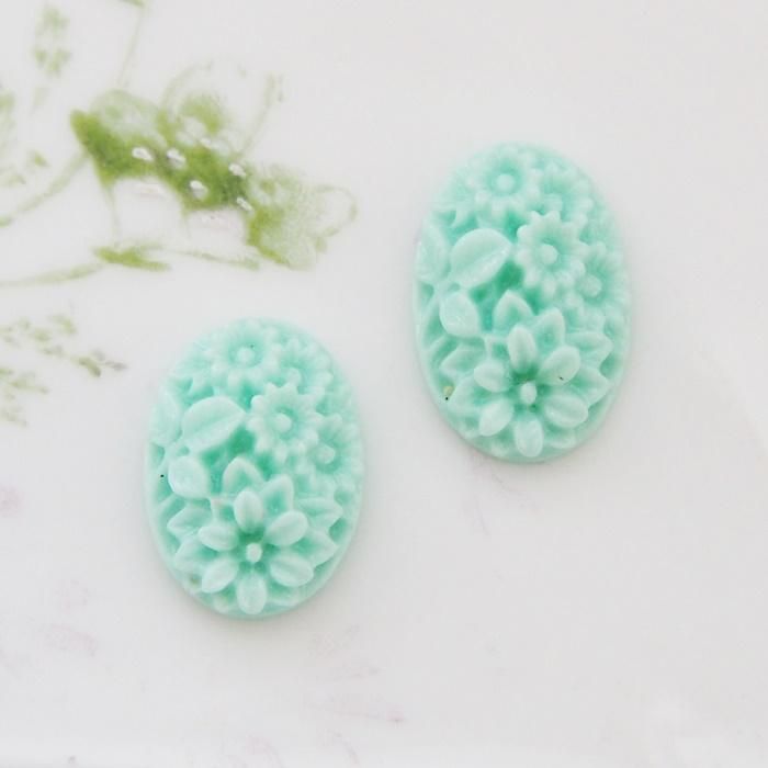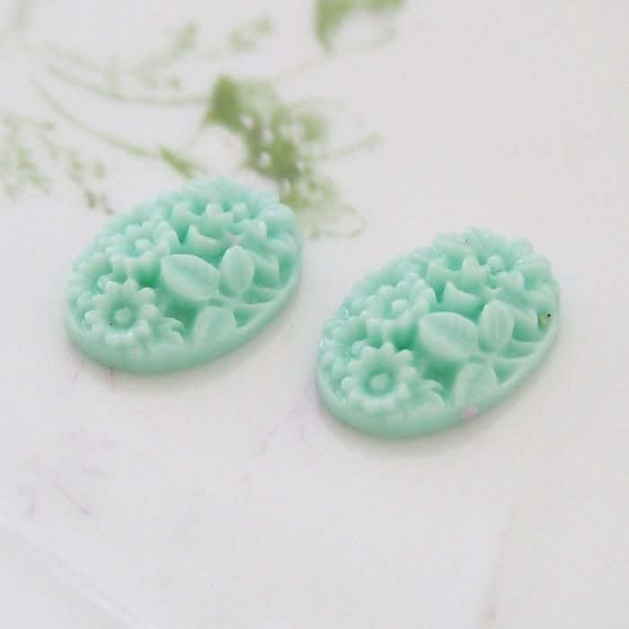 ヴィンテージ グリーンフラワー オーバル カボション 18 x 13mm 【1個】