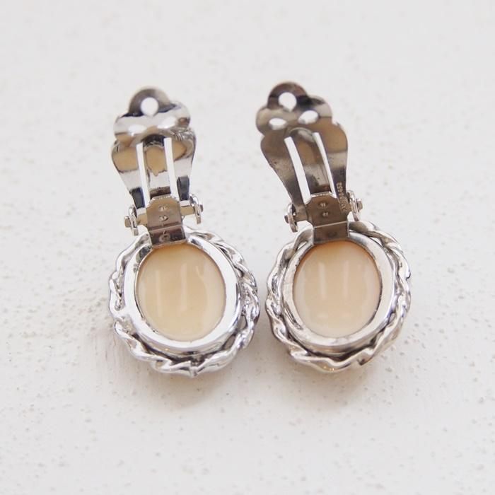 ヴィンテージガラス ベージュ&ホワイト カメオ シルバートーンフレーム イヤリング