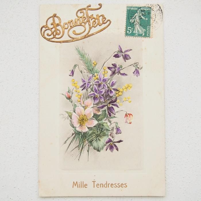 アンティーク ポストカード フランス スミレ 野ばら ミモザ