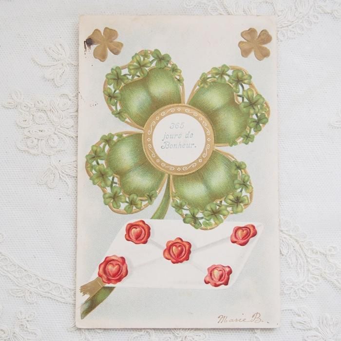 アンティーク ポストカード フランス 四つ葉のクローバー