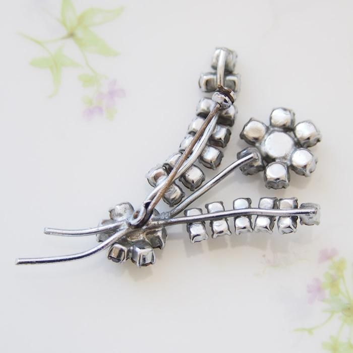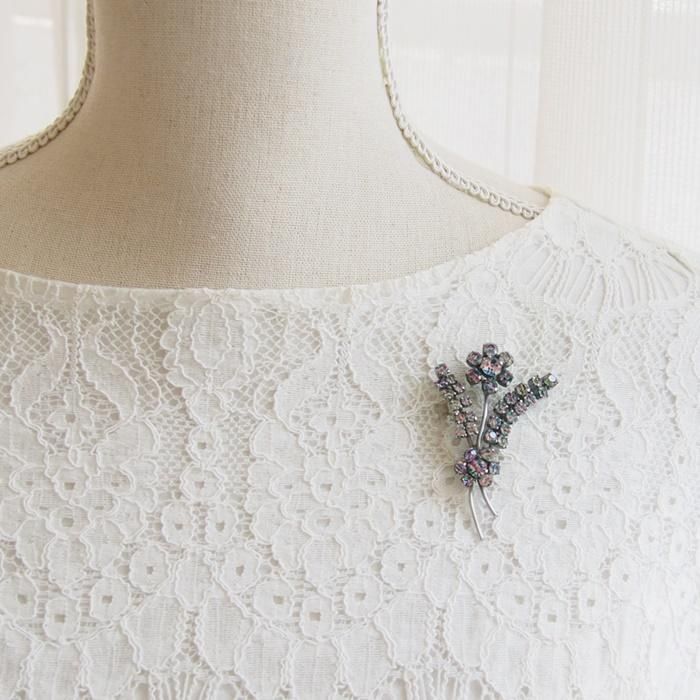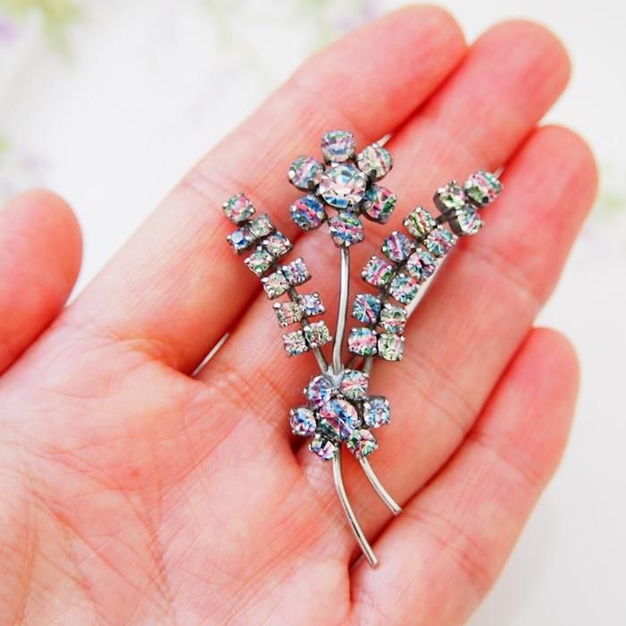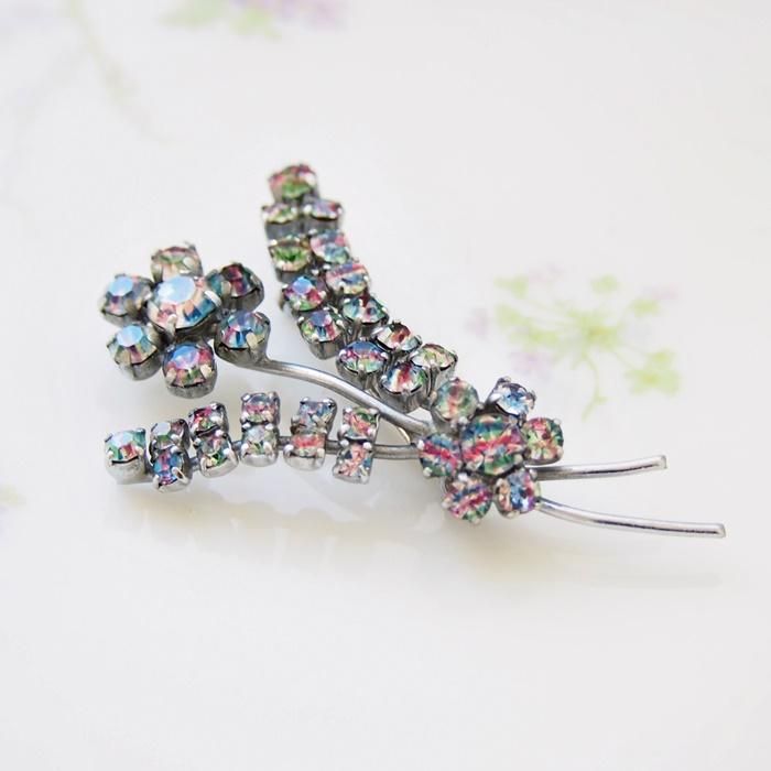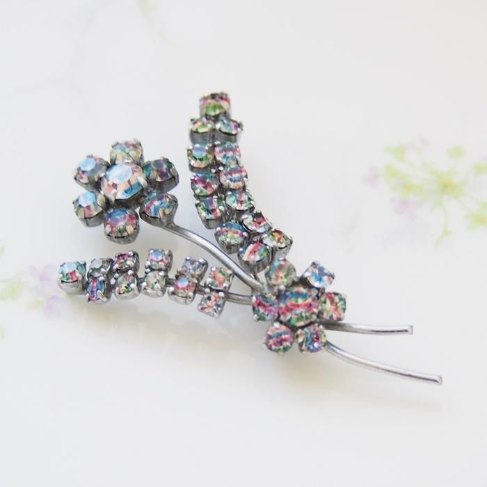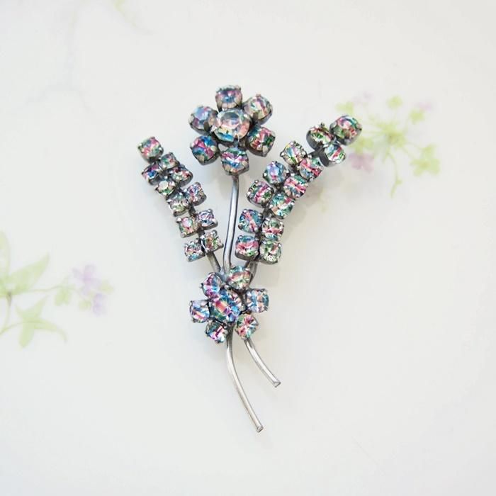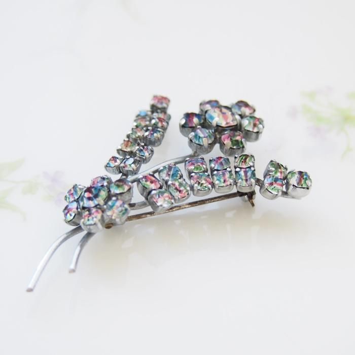 Unsigned Beauty シルバートーン アイリスガラス フラワー ブローチ