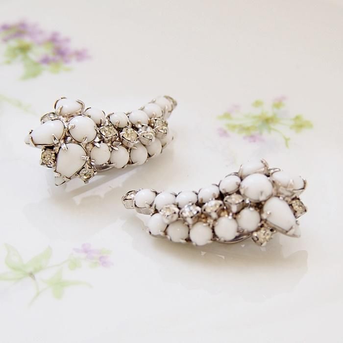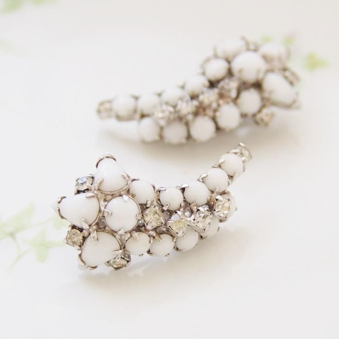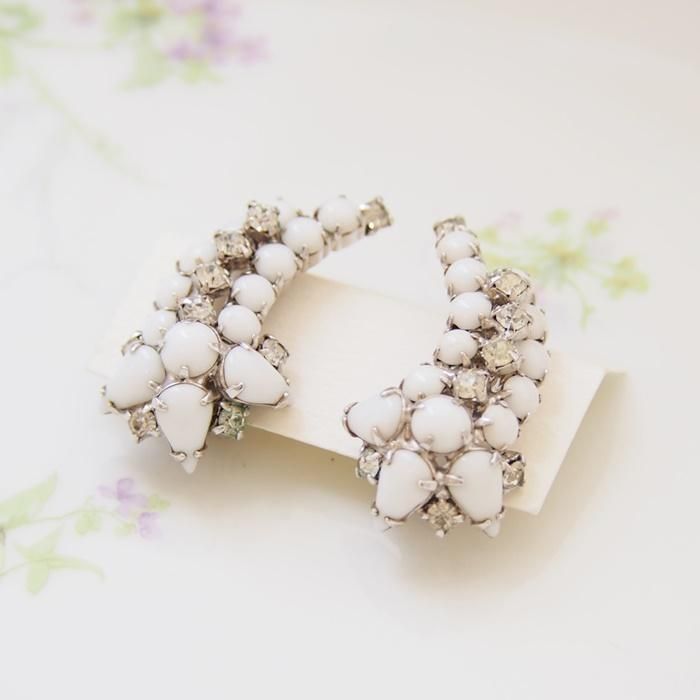 Unsigned Beauty シルバートーン ホワイト&クリアラインストーン イヤリング