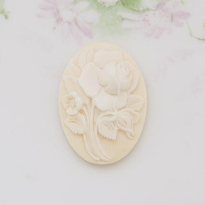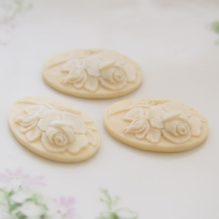ホワイトローズ フラワー オーバル カメオ カボション 30x22 mm 【1個】