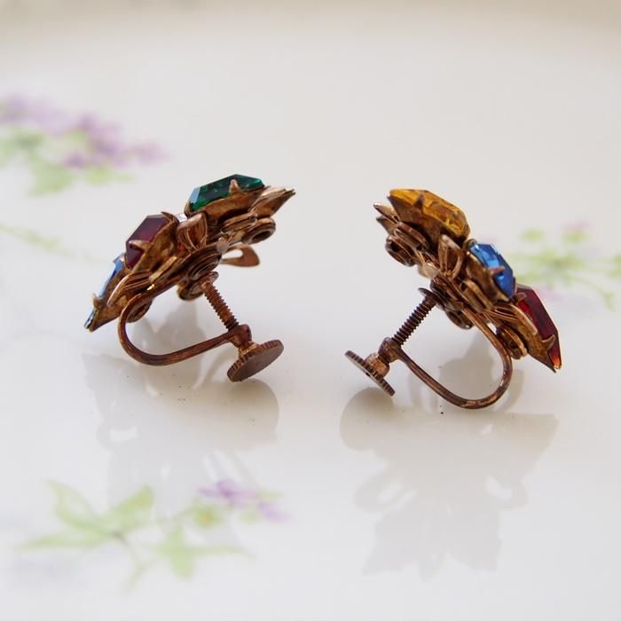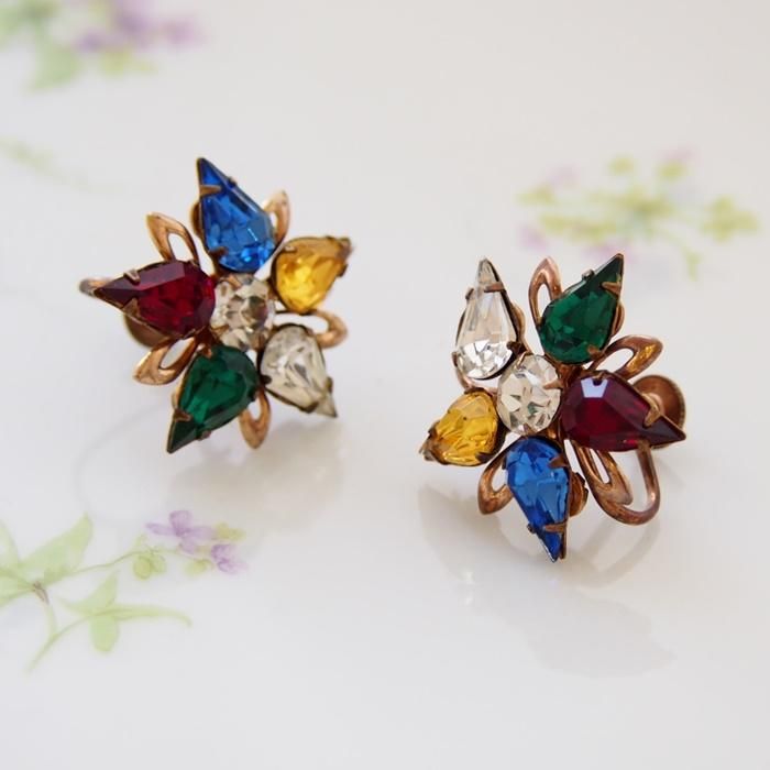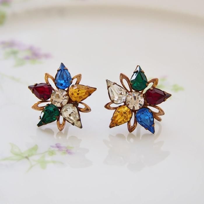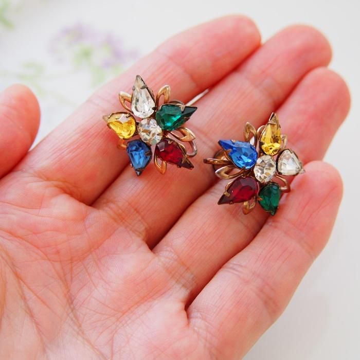 マルチカラーラインストーンのイヤリングです。