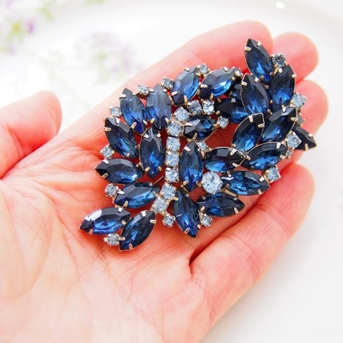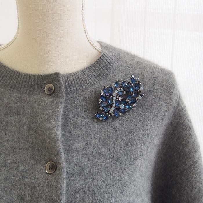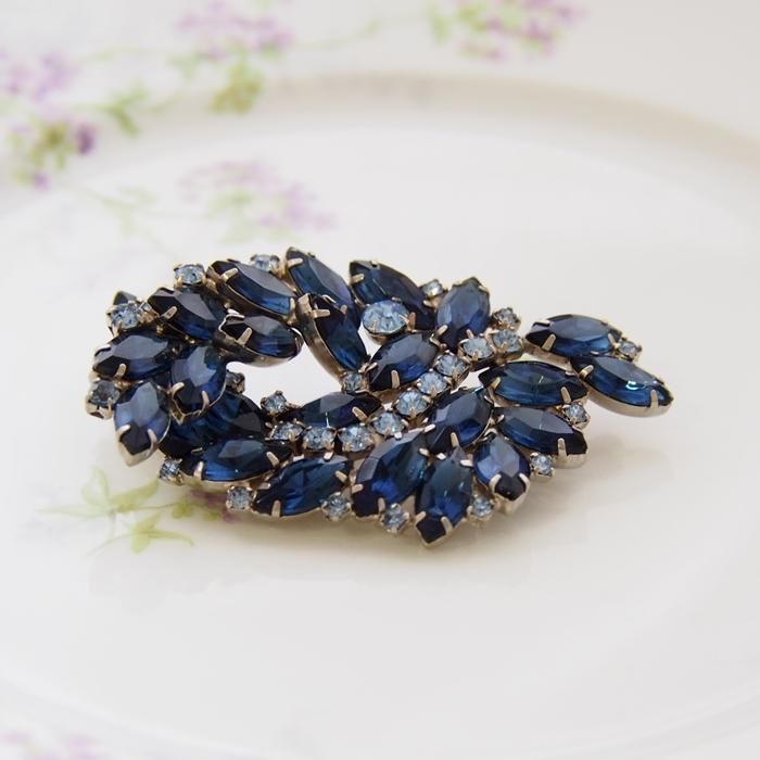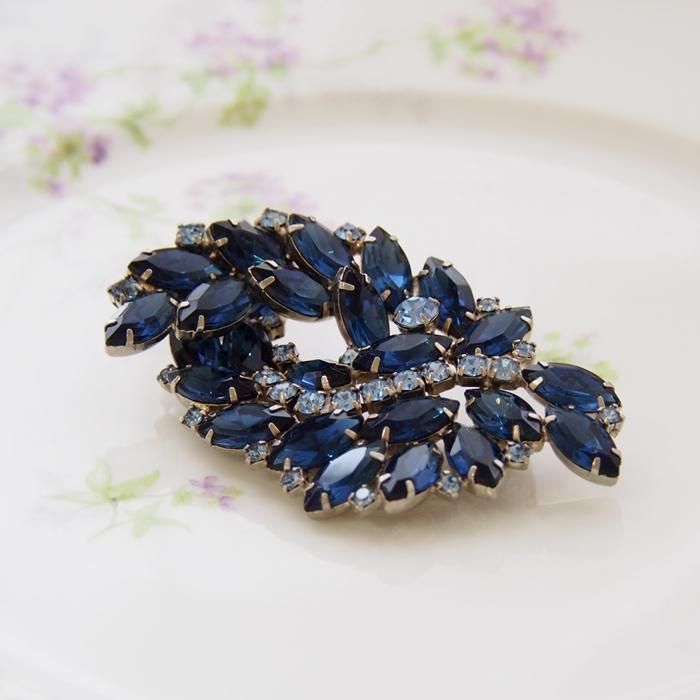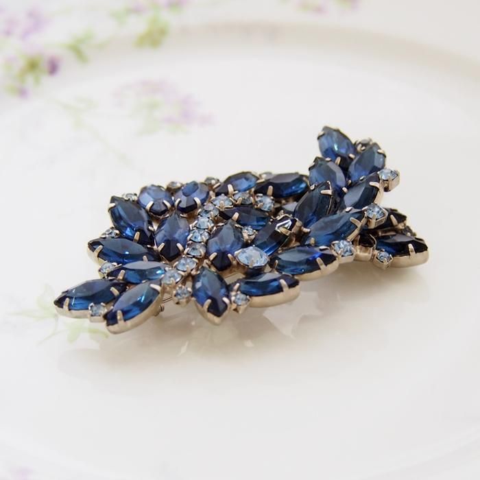 Unsigned Beauty シルバートーン ブルーラインストーン ブローチ