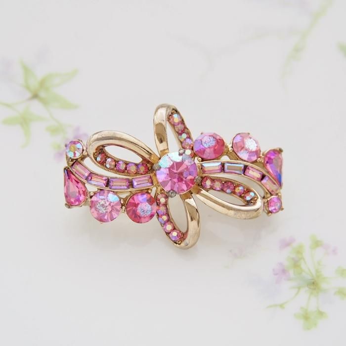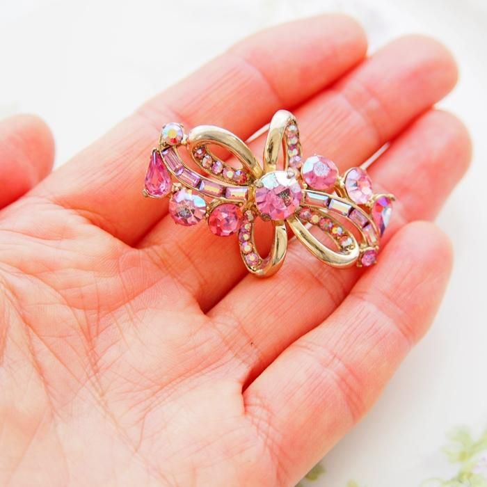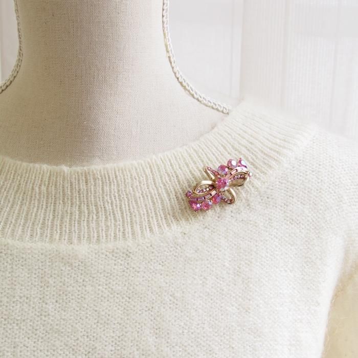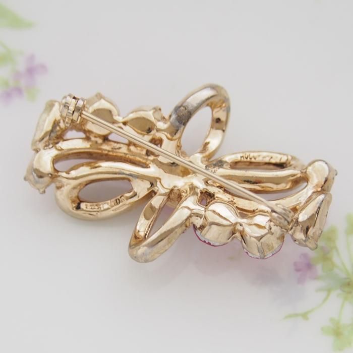 ピンクラインストーンのリボンモチーフのブローチです。