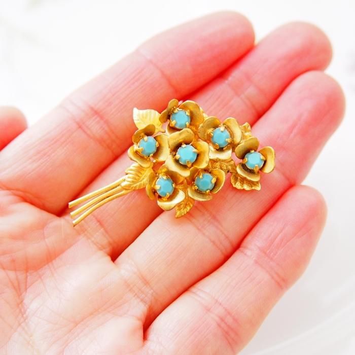 お花の中心にはターコイズブルーのラインストーンがセットされています。