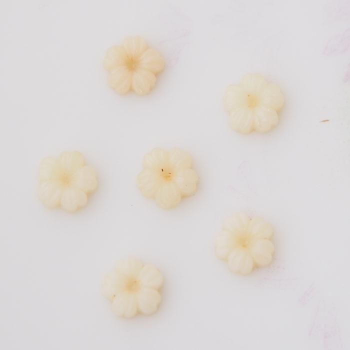 ヴィンテージ ドイツ アイボリーホワイトフラワー ガラス カボション 5.5mm 【1個】