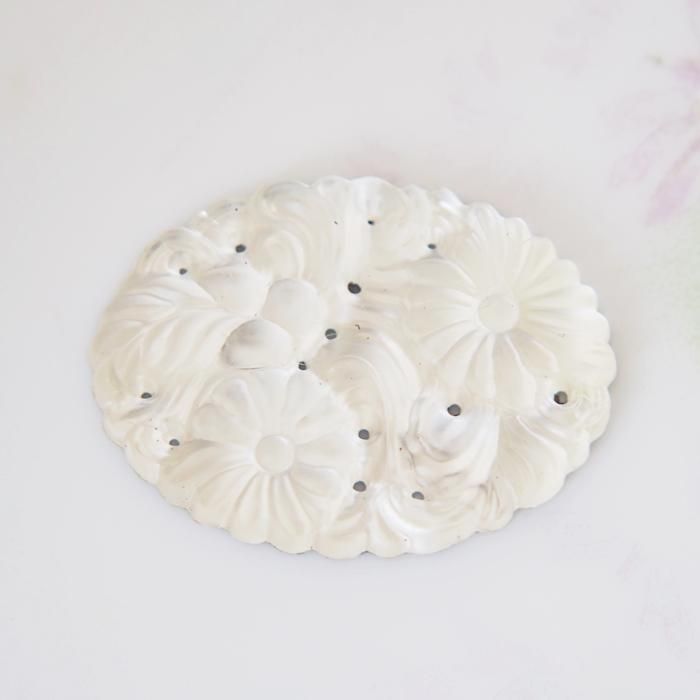 ヴィンテージ ドイツ フラワー フロストガラスカボション オーバル 30x22mm 【1個】