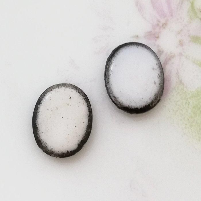 ヴィンテージ ドイツ ローズ 薔薇 ブラック ガラス カボション オーバル 10x8mm 【1個】