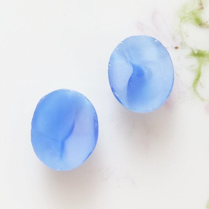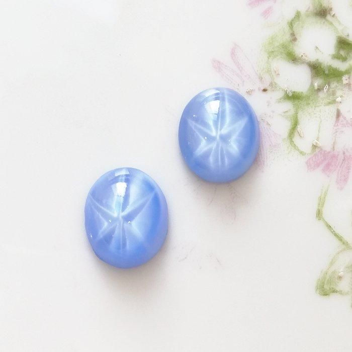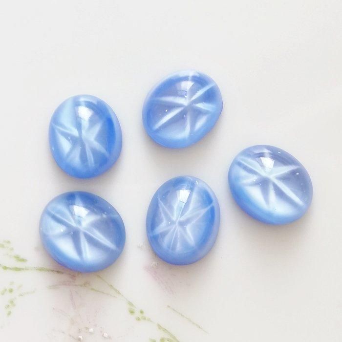 ヴィンテージ チェコ ミルキーブルー スター ガラス カボション オーバル 12x10mm 【1個】