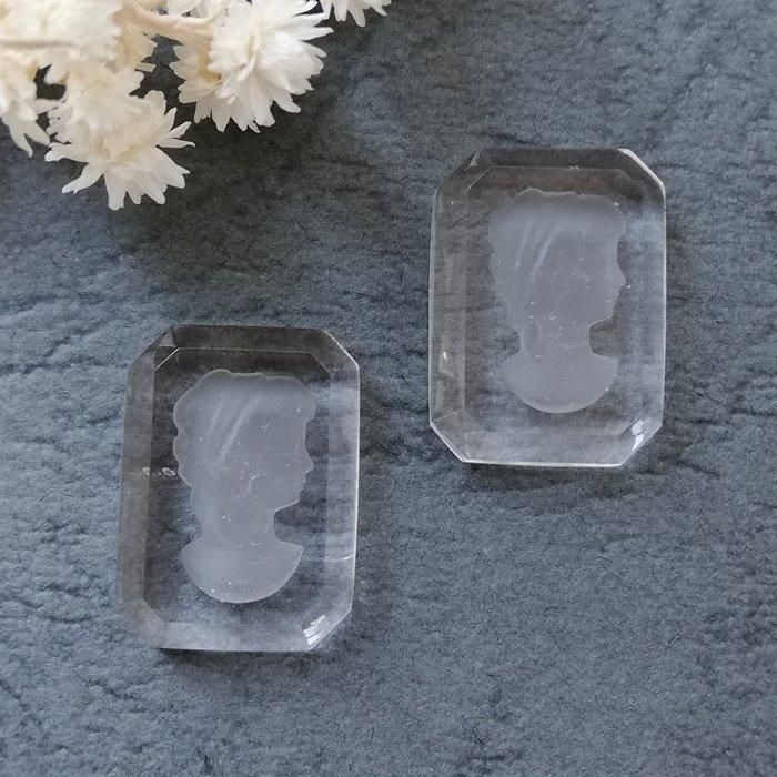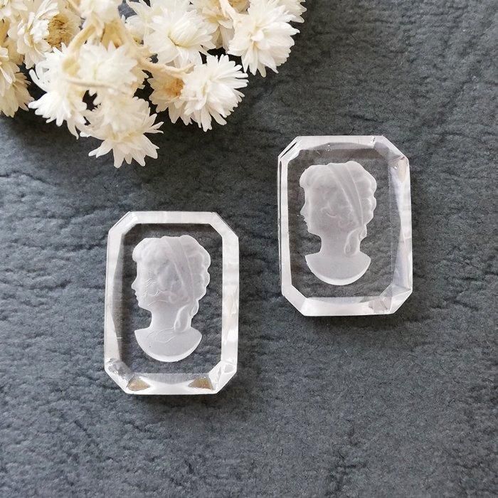 ヴィンテージ ドイツ カメオ フロストガラス カボション オクタゴン 18x13mm 【1個】