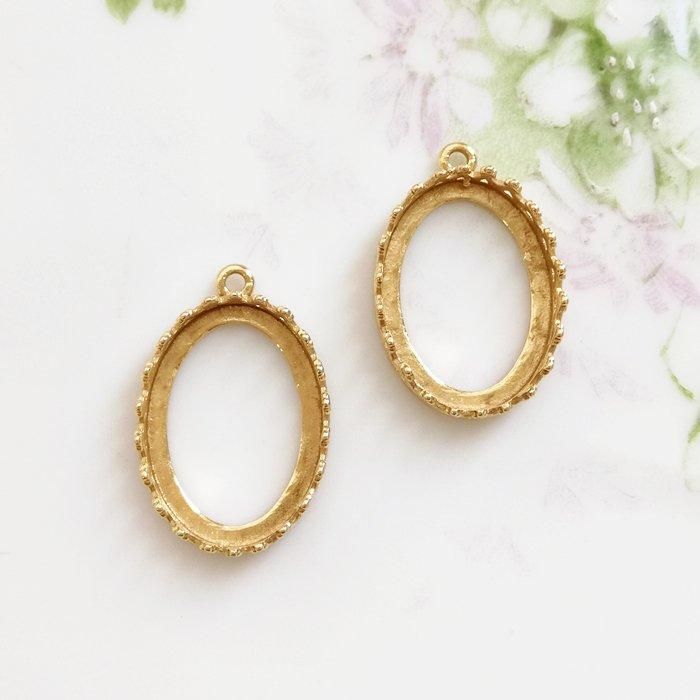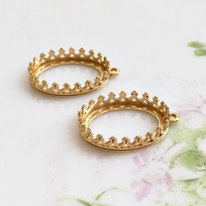 JBB社 真鍮 ゴールドカラー クラウンセッティング 1ループ 空枠 台座(18x13mm/オーバル) 【1個】