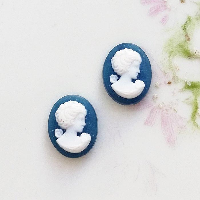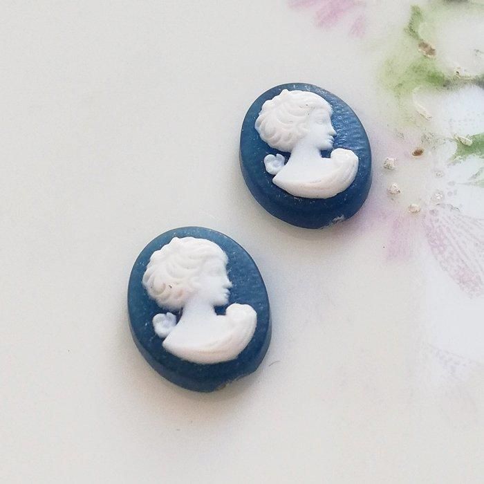 ヴィンテージ ドイツ レディ ブルー オーバル カメオカボション 10x8mm 【1個】