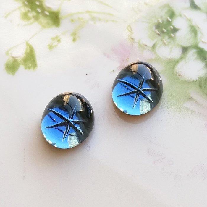 ヴィンテージ モンタナブルー オーバル ガラスカボション 12x10mm 【1個】