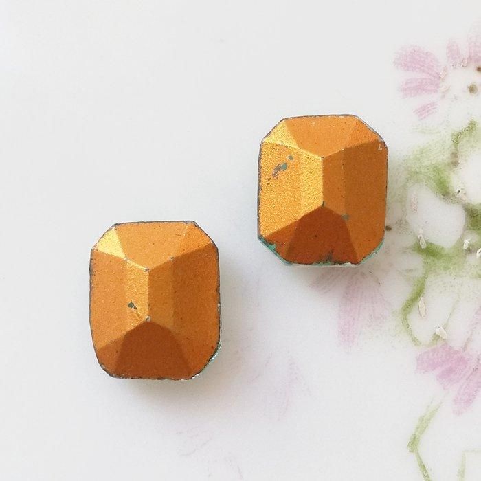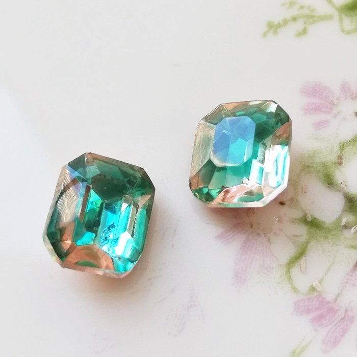 ヴィンテージ ドイツ グリーン オクタゴン ガラスストーン 12x10mm 【1個】