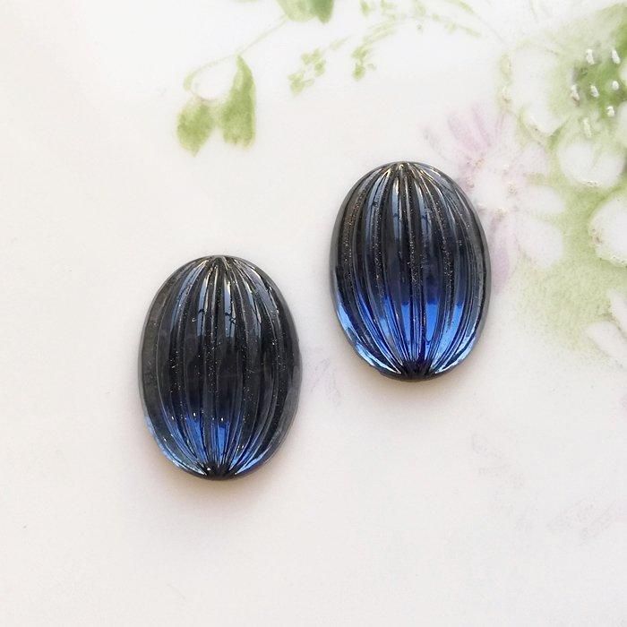 ヴィンテージ ドイツ モンタナブルー メロン オーバル ガラスカボション 18x13mm 【1個】