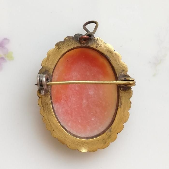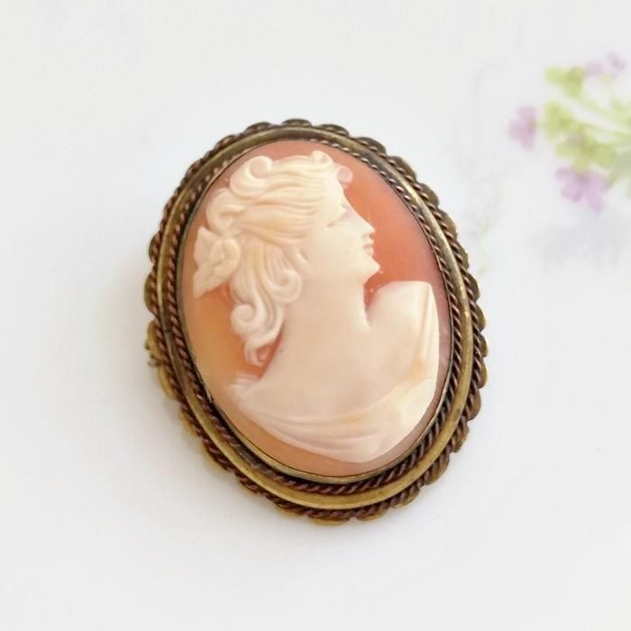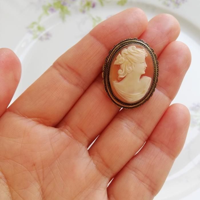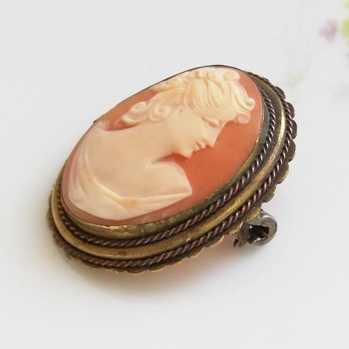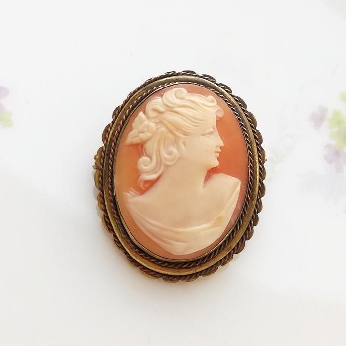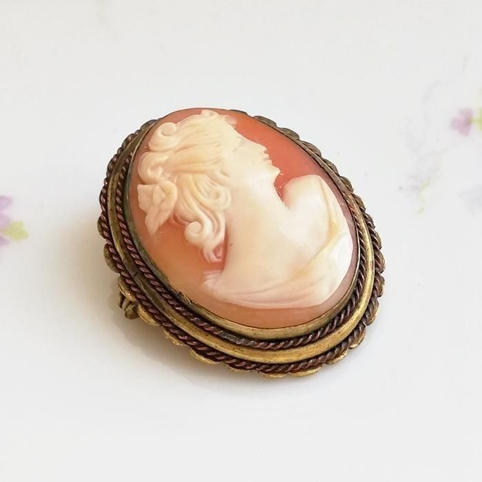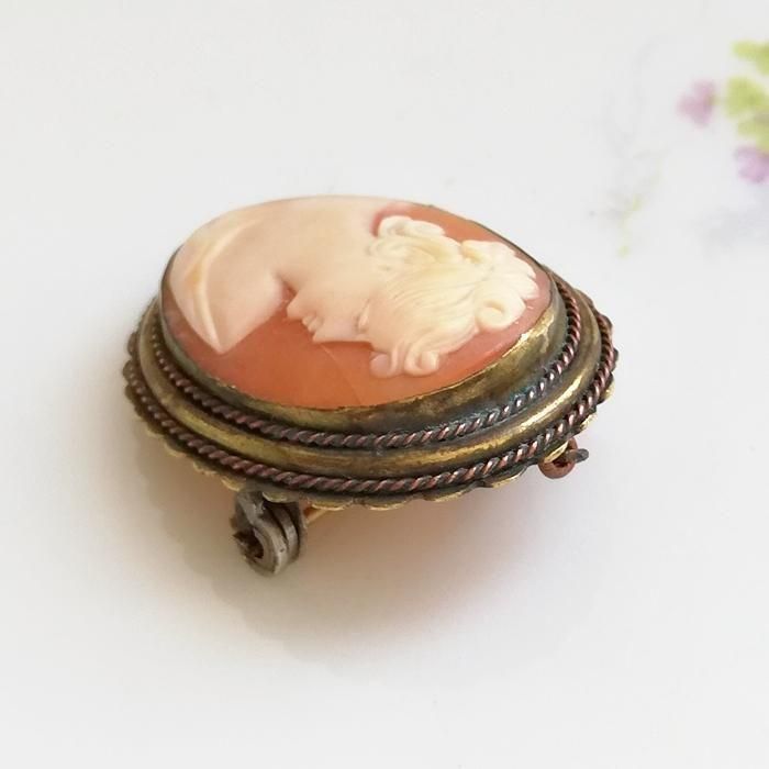 Unsigned Beauty ゴールドトーン レディ 淑女のカメオ シェル ブローチ