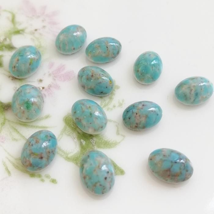 ヴィンテージ フェイクターコイズ ブルー ガラス カボション オーバル 8x6mm 【1個】