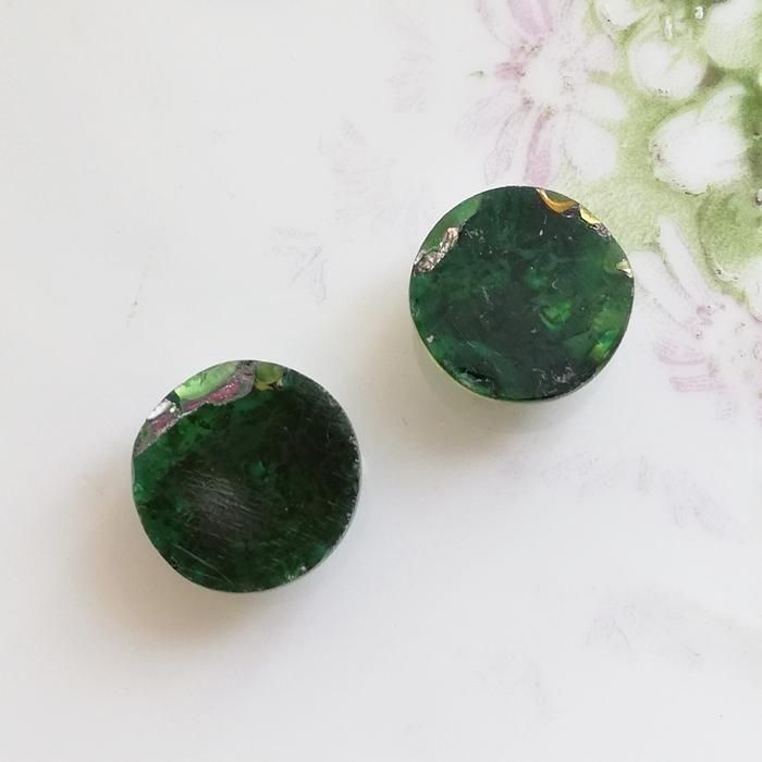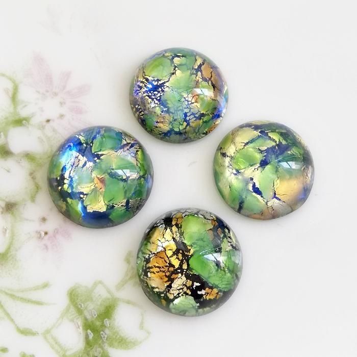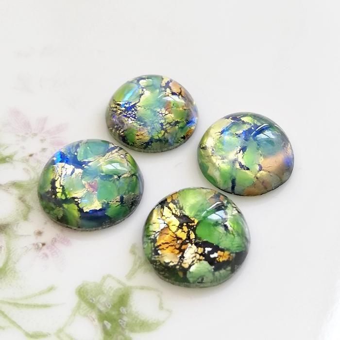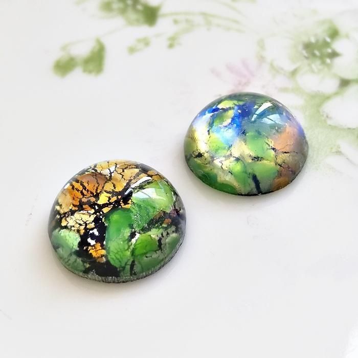 ヴィンテージ ドイツ アップルグリーン ファイヤーオパール ガラス カボション ラウンド 14mm【1個】