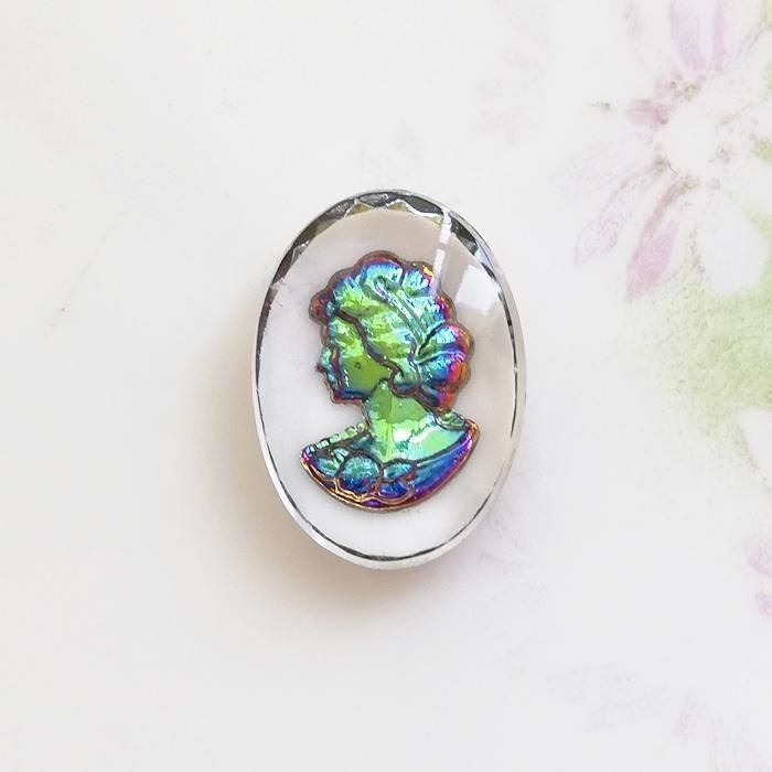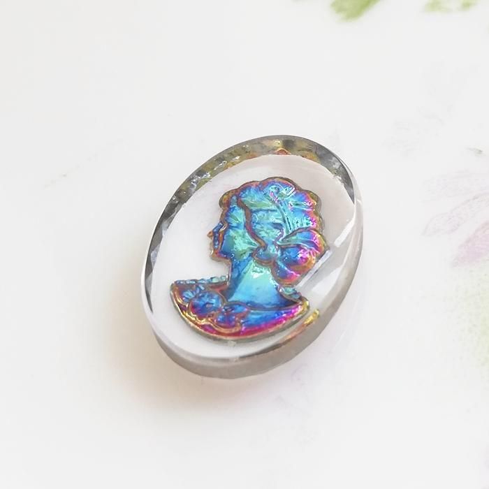 ヴィンテージ ドイツ バミューダブルー レディ インタリオ ガラス カボション オーバル 18x13mm 【1個】