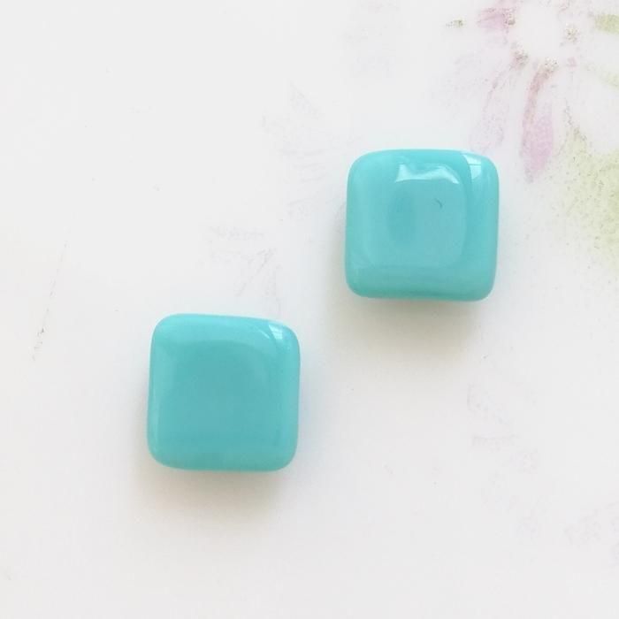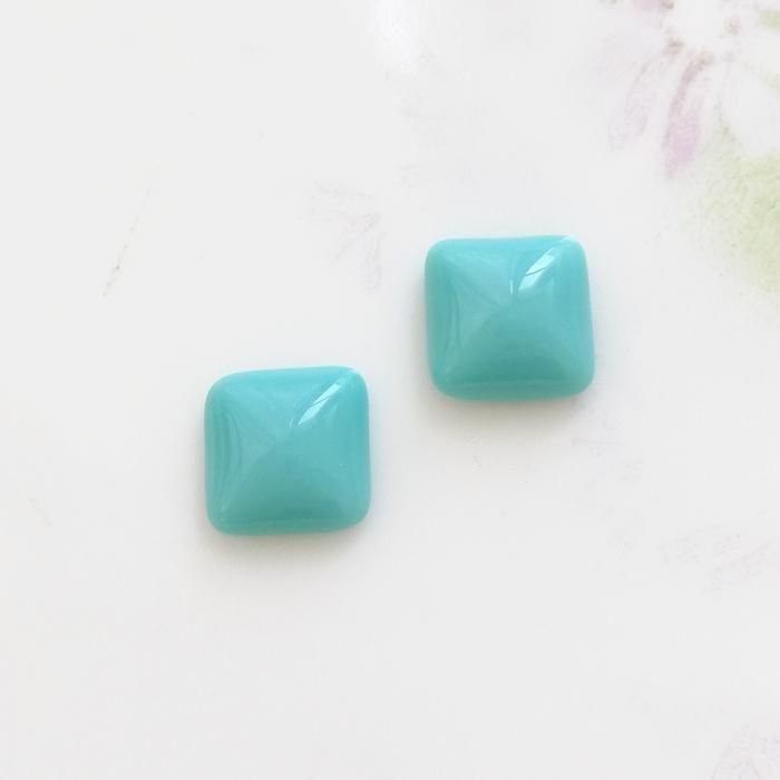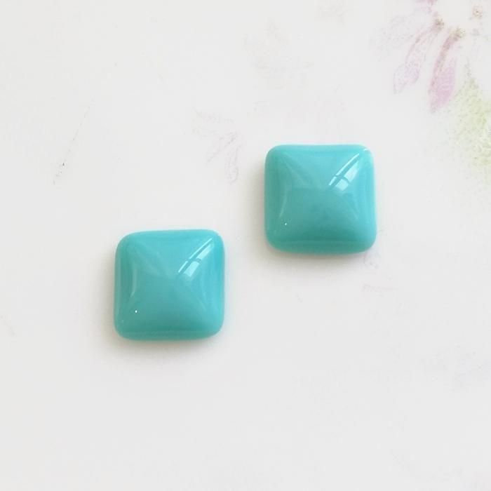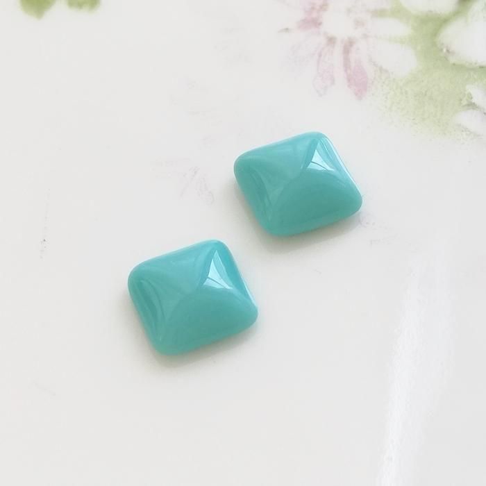 ヴィンテージ ドイツ ブルー ガラス カボション スクウェア 8mm  【1個】